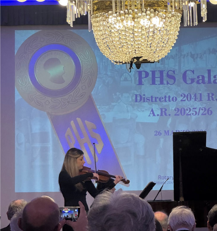 PAUL HARRIS SOCIETY![]() PAUL HARRIS SOCIETY CON Valerio Cimino Il Gala della PHS per il 2041 Distretto R.I. si è tenuto la sera del 26 marzo presso il Circolo Volta di via Giusti 16 a Milano. La serata è stata introdotta dal saluto del Governatore del Distretto 2041 seguita da un intervento video di Roberto Pincione Coordinatore della PHS per il Distretto 2041 che ha portato nel video il saluto di Jennifer Jones Past President R.I 2022/23. La serata è stata introdotta da un concerto di musica classica eseguito da Silvia (pianoforte) e Stella (Violino) Cattaneo che hanno eseguito magistralmente numerose pagine di musica classica. |